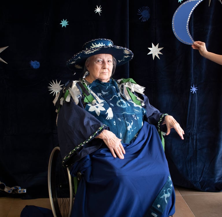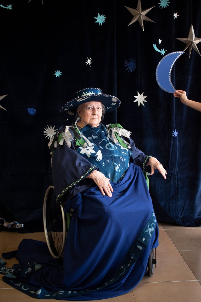 L'artiste Anaïs Heureaux développe dans son projet Magiciennes, Magiciens, des ateliers costumes et portraits photographiques avec des seniors au sein de l'EHPAD de Rognes et Charleval en partenariat avec la BD13 dans leur programmation Sorcières et Sauvages.